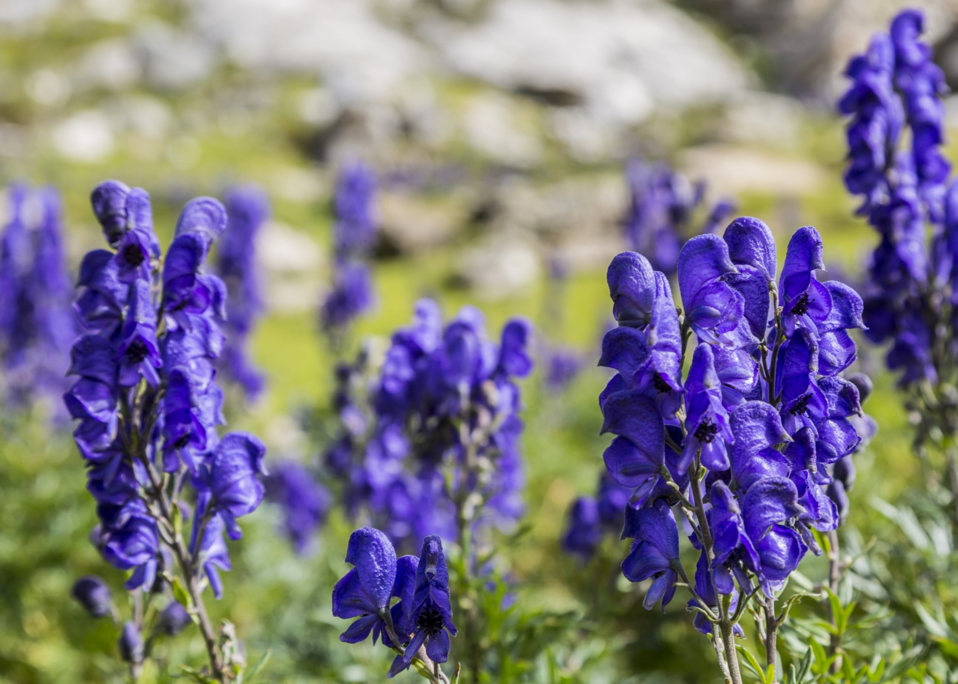 Les aconits sont des espèces de plantes vivaces herbacées aux fleurs formant des grappes. Répartie dans les régions tempérées de l'hémisphère nord, l’Aconitum napellus, aussi appelée la reine des poisons, serait la plus toxique de son espèce. Ingérer 1 à 3 grammes de sa racine pourrait provoquer une réaction mortelle dans l'heure qui suit.