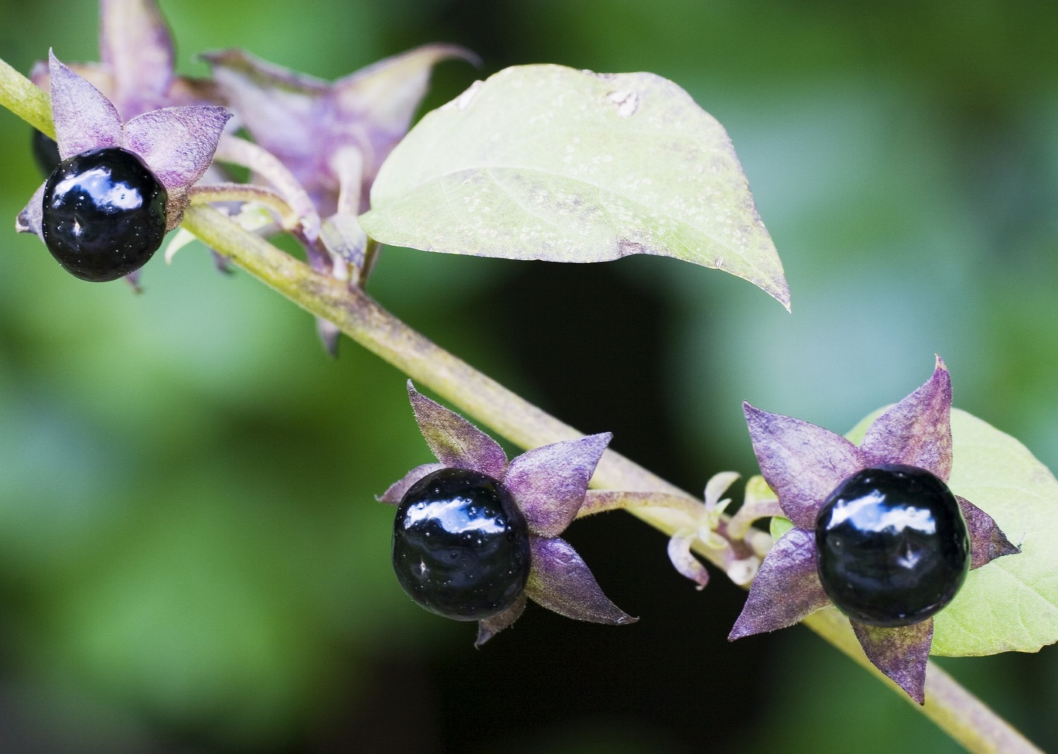 La Belladone (Deadly Nightshade en anglais) est une plante herbacée vivace aussi appelée Belle Dame, Bouton-noir, Cerise du diable, Herbe empoisonnée, pour ne nommer que quelques-uns de ses petits noms. Cette plante peut se révéler très toxique : ses baies noires contiennent de l'atropine, substance agissant sur le système nerveux. Elle peut être présente dans le feuillage de pommes de terre, de tomates, de vignes de jardin et bien d’autres. Elle était jadis associée à la magie noire.