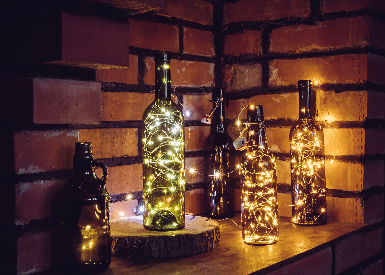 Donnez une seconde vie à vos bouteilles de vin en y insérant un fil lumineux à la lumière DEL. Ainsi transformées, celles-ci vous étonneront par la lueur ardente qu'elles transmettent.