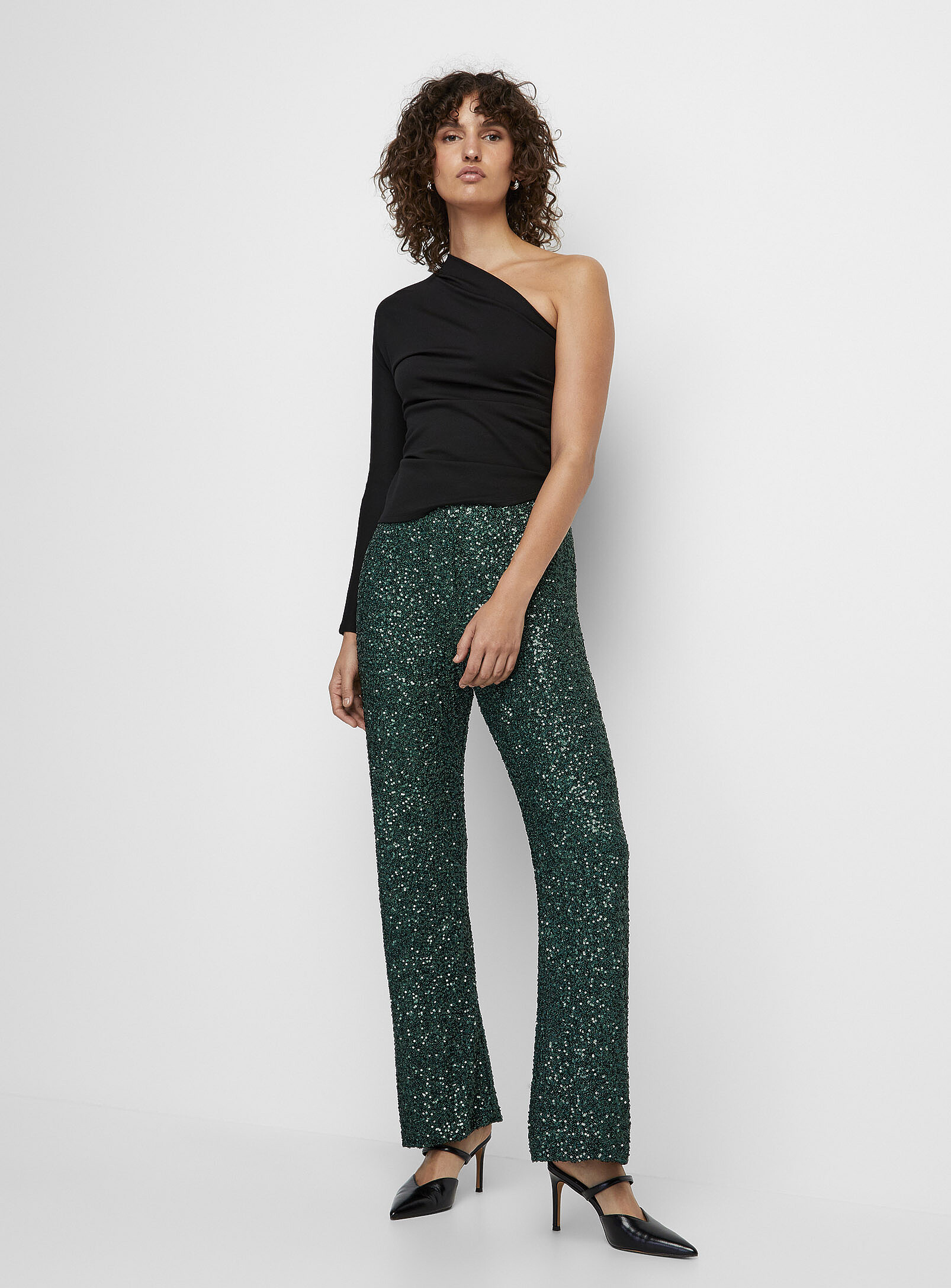 Le pantalon semi-évasé paillettes émeraude, Simons - 119$