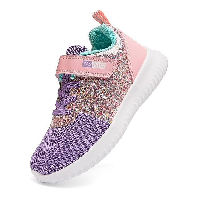 Les paillettes font toujours sensation chez les petits! Elles s’agencent ici à une maille respirante et sans couture, pour un confort extra. Elles offrent aussi une protection des orteils supplémentaire en caoutchouc. L’attache en velcro et la languette à l’arrière permettent de les glisser facilement aux pieds.