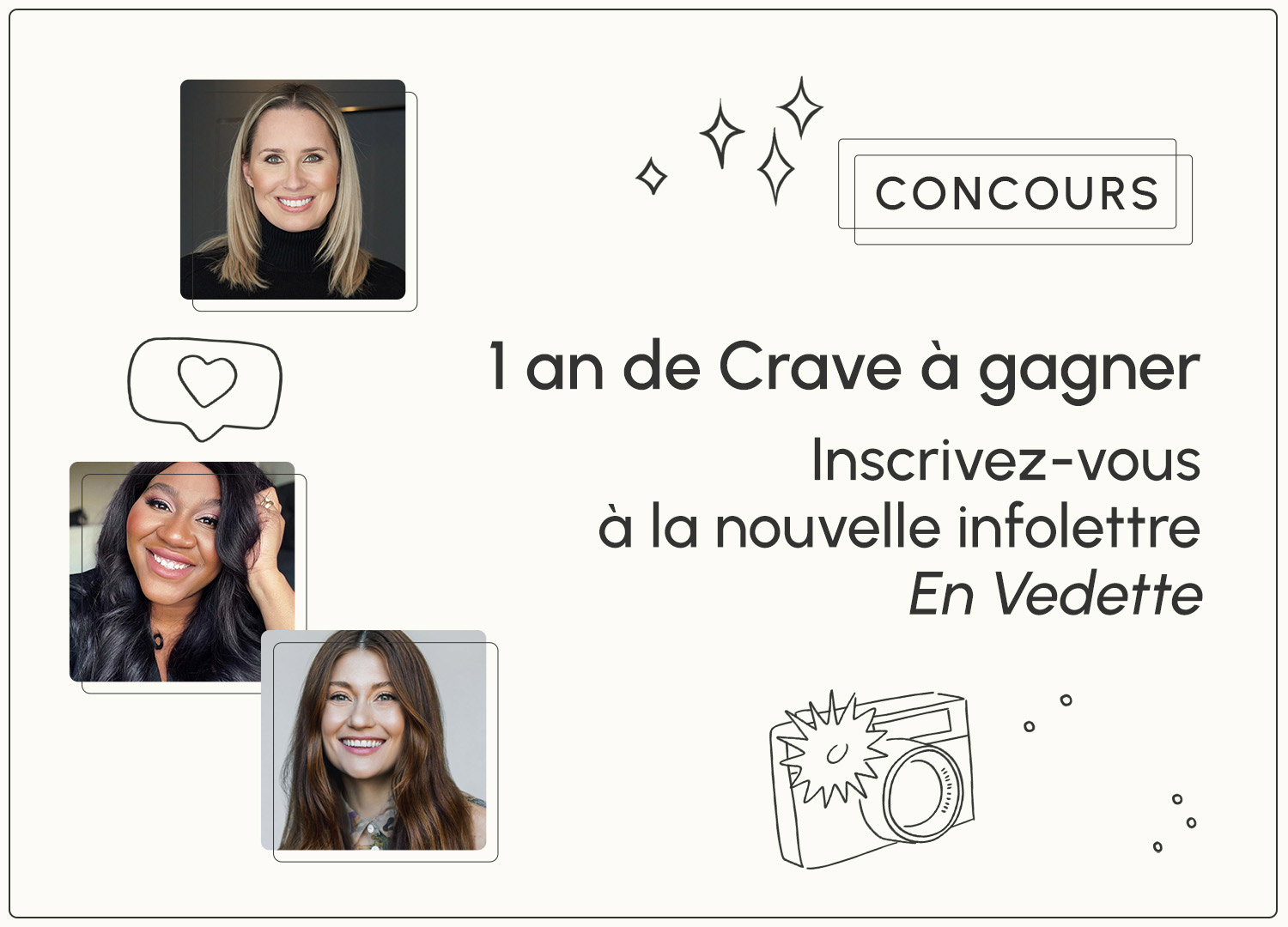 1. Le concours « Gagnez votre abonnement d’un an à CRAVE » (ci-après le « Concours ») est organisé par Bell Média inc. (ci-après « Bell Média »). Il débute le 20 février 2023 à midi et se termine le 6 mars 2023 à 23H59 (HNE). Toute mention au présent règlement relative à l’heure fait référence à l’heure normale de l’Est (HNE). Le Concours n'est aucunement associé à, géré ou commandité par Facebook et Instagram.