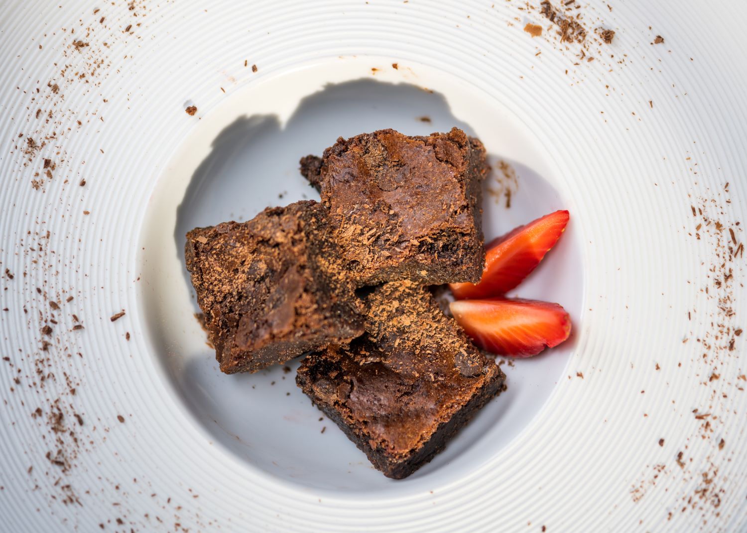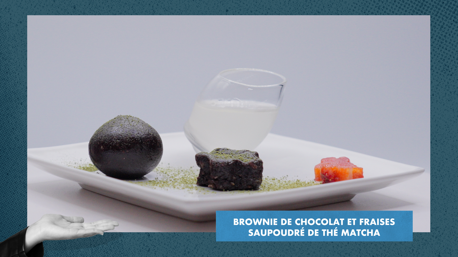 Essayez notre recette de brownie sans cuisson et sans sucre! Un dessert santé qui se prépare rapidement, et qui s'agence parfaitement avec quelques fraises! Pour la touche finale, saupoudrez le tout de thé matcha!
