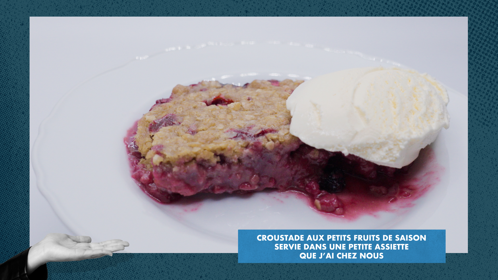 Croustade aux petits fruits de saison servie dans une petite assiette que j’ai chez nous