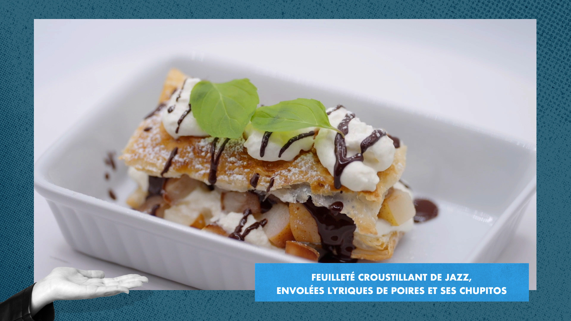 Feuilleté croustillant de jazz, envolées lyriques de poire et ses chupitos