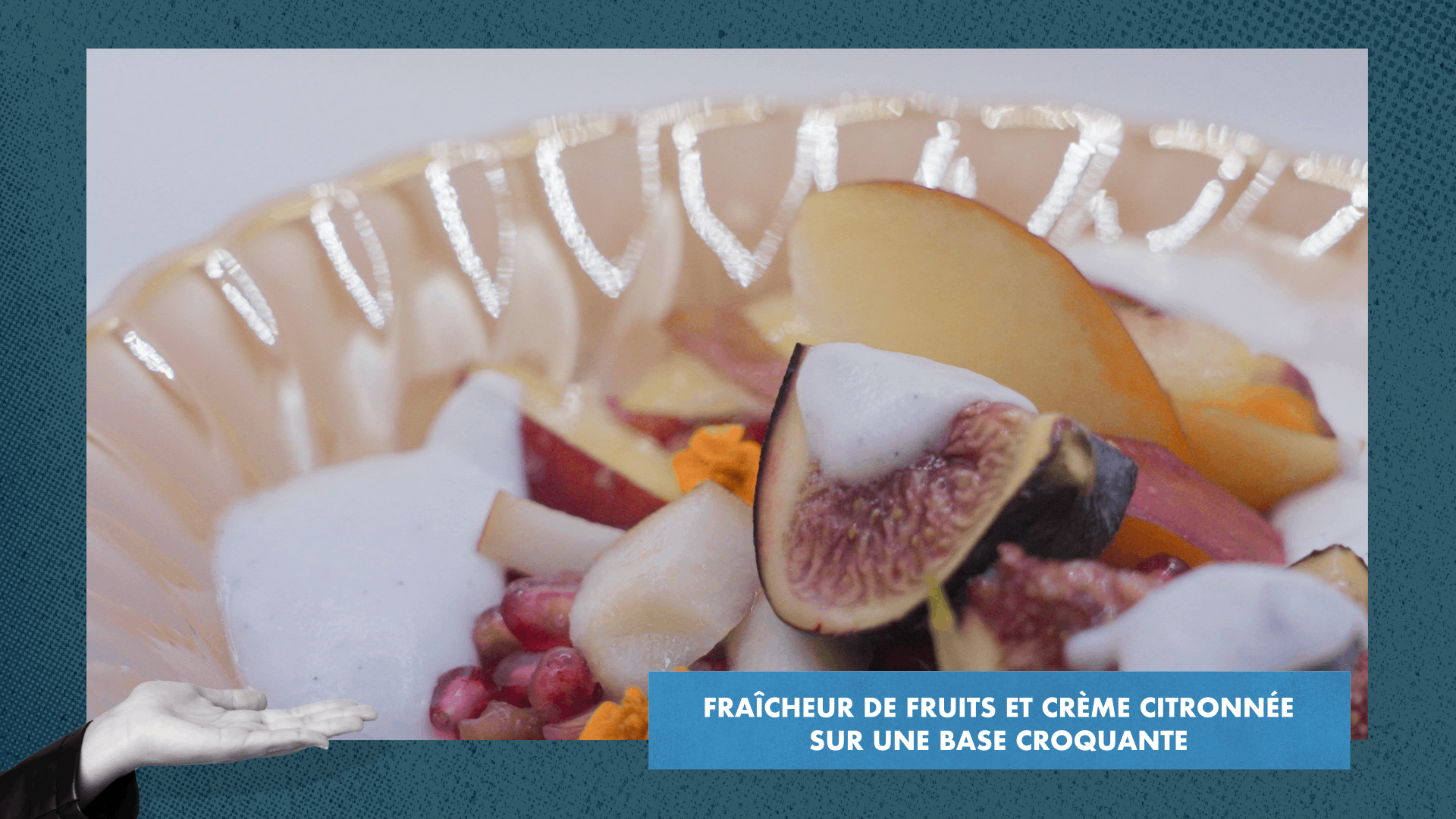 Fraîcheur de fruits et crème citronnée sur une base croquante