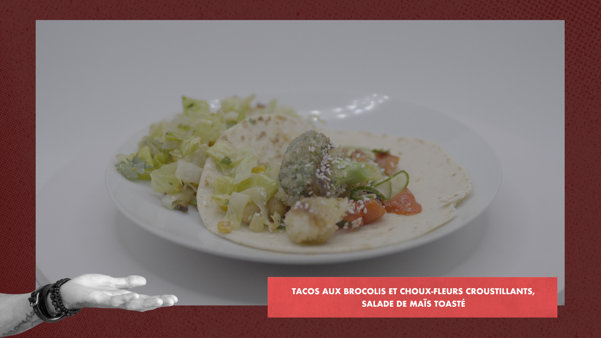 Tacos aux brocolis et choux-fleurs croustillants, Salade de maïs toasté