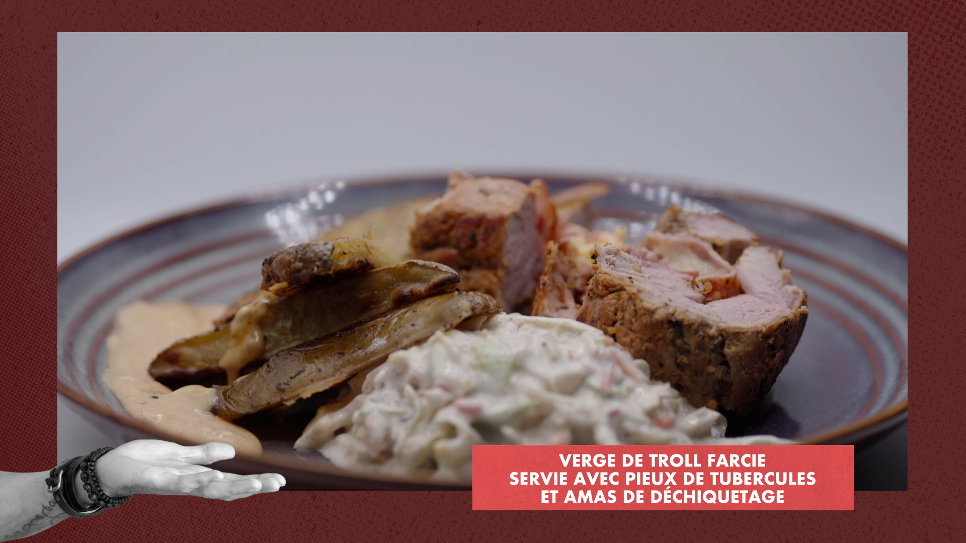 Verge de troll farcie servie avec pieux de tubercule et amas de déchiquetage
