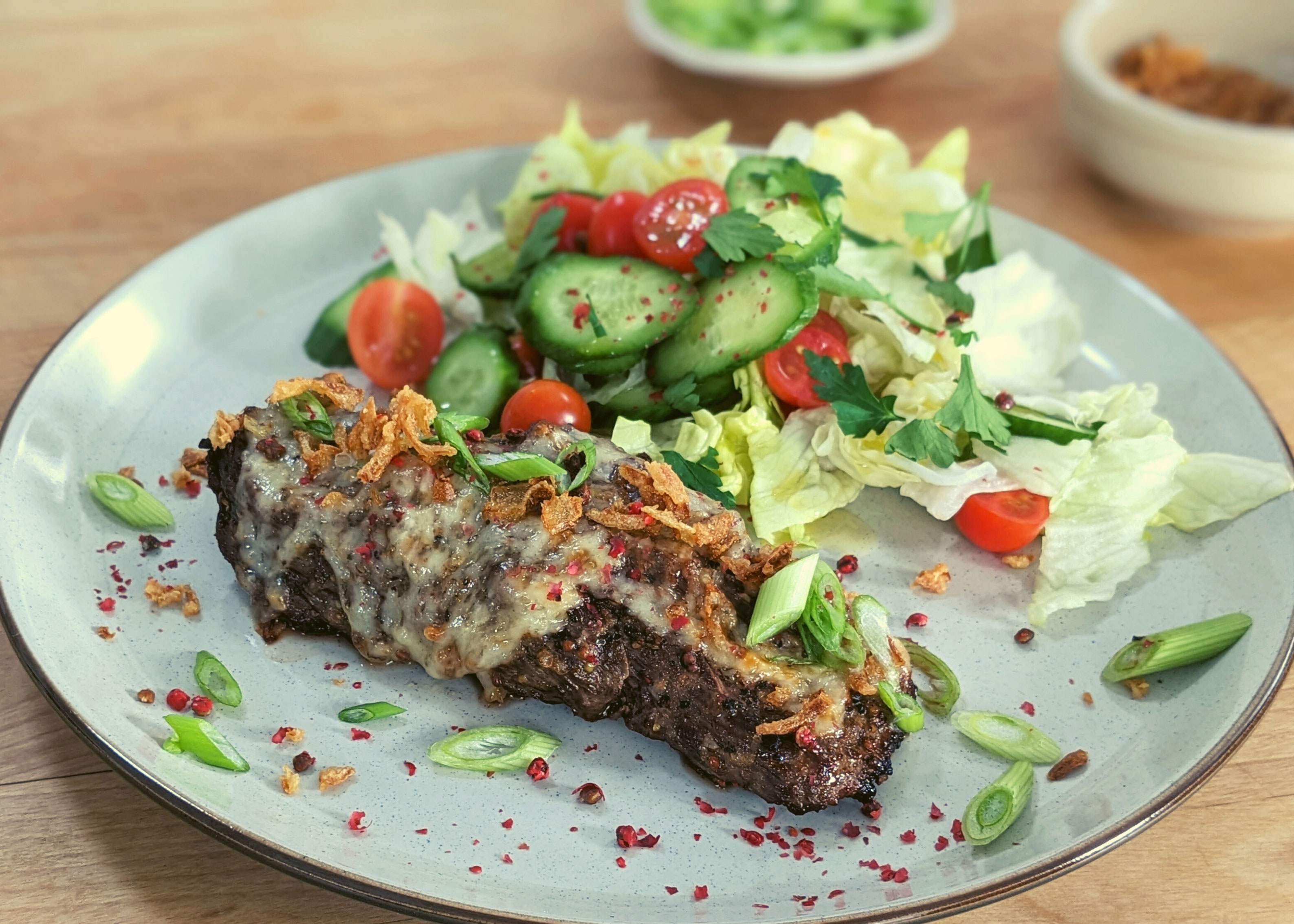 Une bavette à la friteuse à air? Ben oui, et gratinée en plus! Max L'Affamé vous invite à essayer cette recette qui sort un peu de l'ordinaire. Vous ne serez pas déçus.