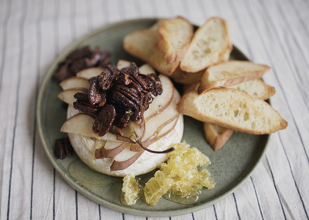 Pour régaler vos invités, quoi de plus convivial et décadent qu'un brie fondant et doux... Les pacanes ajoutent la touche croustillante parfaite!