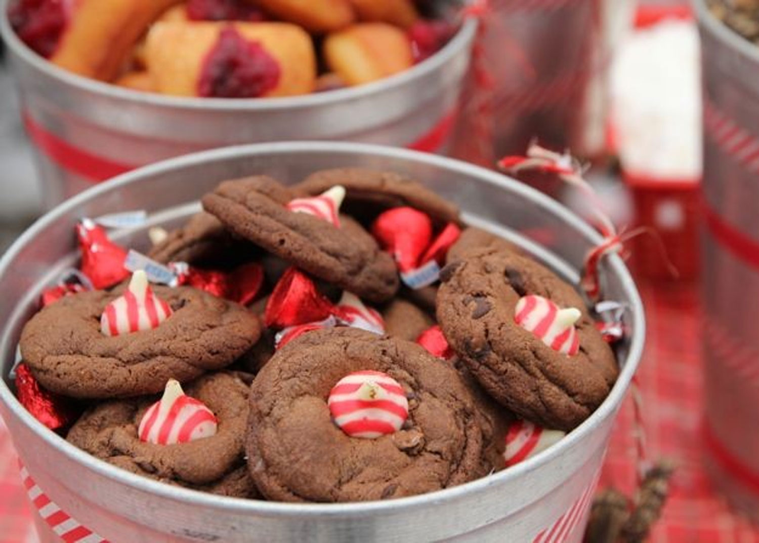 Des biscuits tendres au chocolat... avec un succulent chocolat kisses de Hershey! Un petit plaisir de Noël à offrir à ceux et celles qu'on aime!