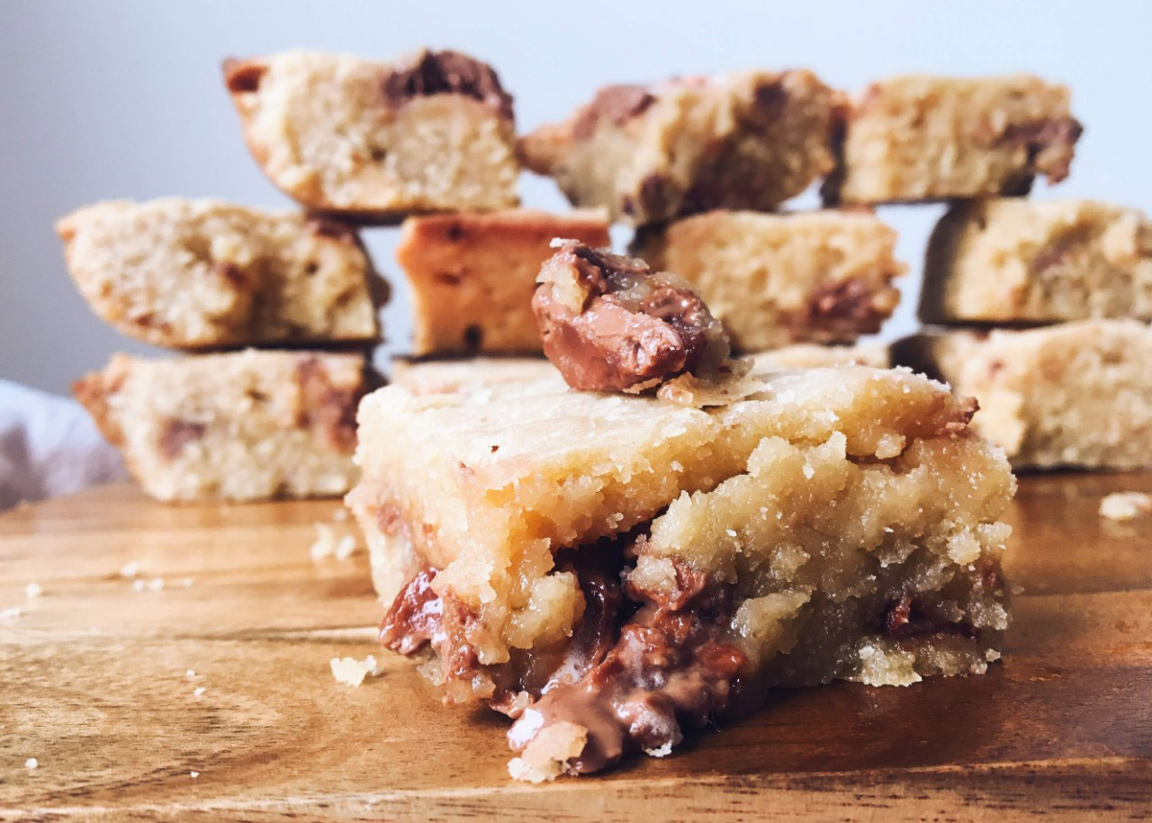 Encore plutôt méconnu, le blondies ressemble à un brownies... sans chocolat. Ce dessert rappelle le biscuit géant avec son goût riche et sa texture incroyablement moelleuse et fondante. Les oeufs fondants complètent parfaitement ce dessert. Au diable les calories!