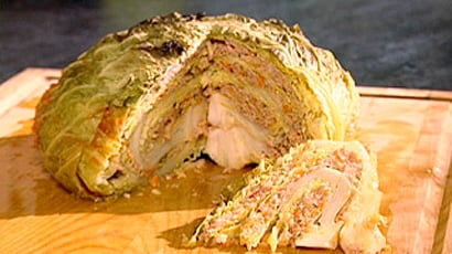 L'entourer de la farce puis rabattre quelques feuilles par-dessus.