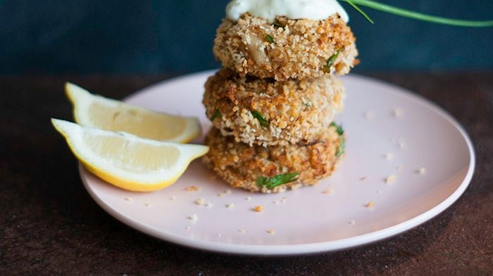 C'est très important de laisser les «crab cakes» refroidir complètement avant de les faire cuire, afin qu'ils se tiennent mieux. Les cuire au four permet de s'assurer qu'ils ne se défont pas (et ça demande moins d'huile).