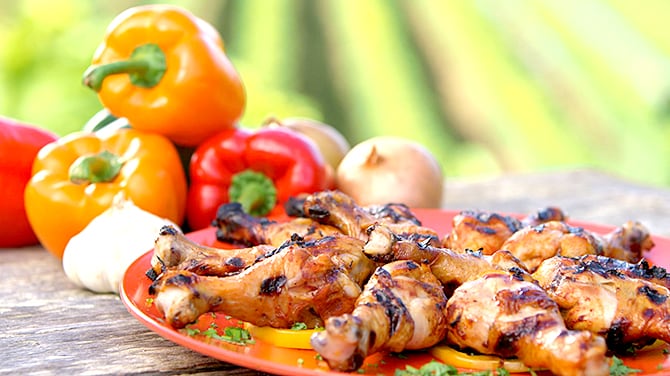 Déposer les morceaux de poulet sur la grille et cuire sur le BBQ à feu vif environ 20 minutes.