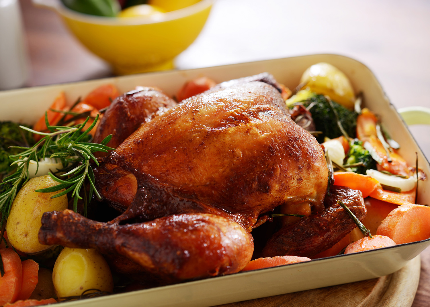 Un délicieux poulet parfaitement assaisonné et rôti, avec beaucoup de légumes fondants dans la bouche!