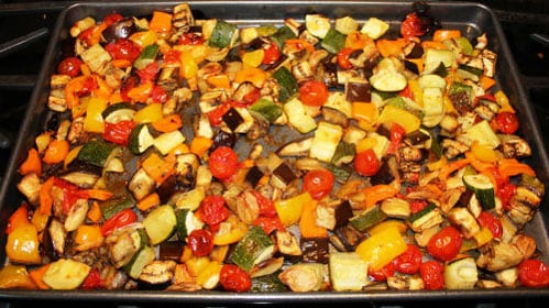 Mettez au four à 425 °F pendant 30 minutes, en remuant les légumes pour bien les décoller de la plaque.