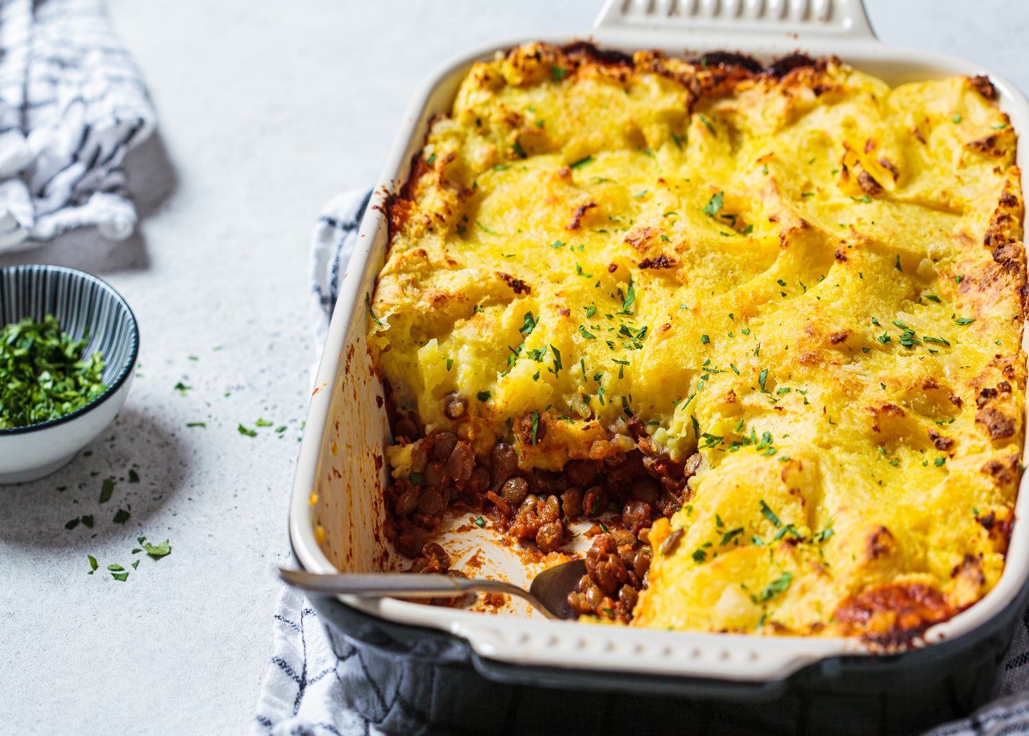 Un plat réconfortant version végé, parfait pour les lunchs et les soirées pressées. Les lentilles sont une source de protéines abordable et nutritive.