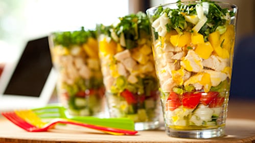 Transvider la vinaigrette dans 4 petits plats hermétiques pour la boîte à lunch. Maintenir au froid jusqu'au repas et ajouter la vinaigrette à la salade au moment de servir.