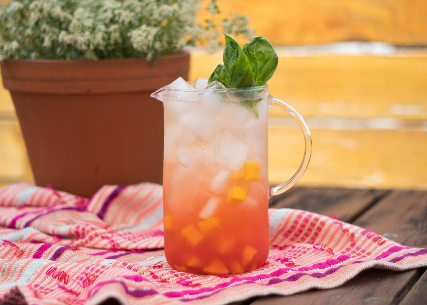 Voici la Sangria Sunrise, un délicieux mélange de vin blanc et d’Aperol qui nous rappelle ces deux cocktails emblématiques de l’été. Agrémenté de mangue juteuse et de basilic du jardin, il s’agit d’un pichet tout en fraîcheur que vous aimerez savourer lorsqu’il fait 30 degrés!