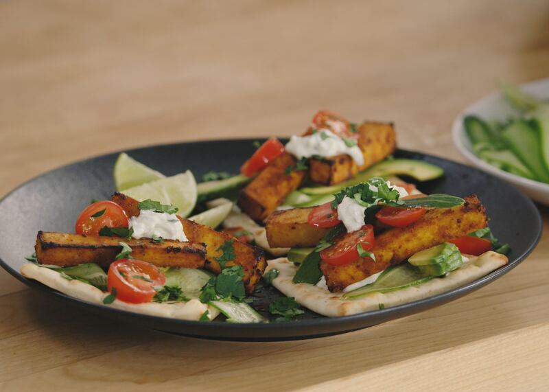 19. Tacos de tofu Tandoori à l'érable sur pain naan à la friteuse à air