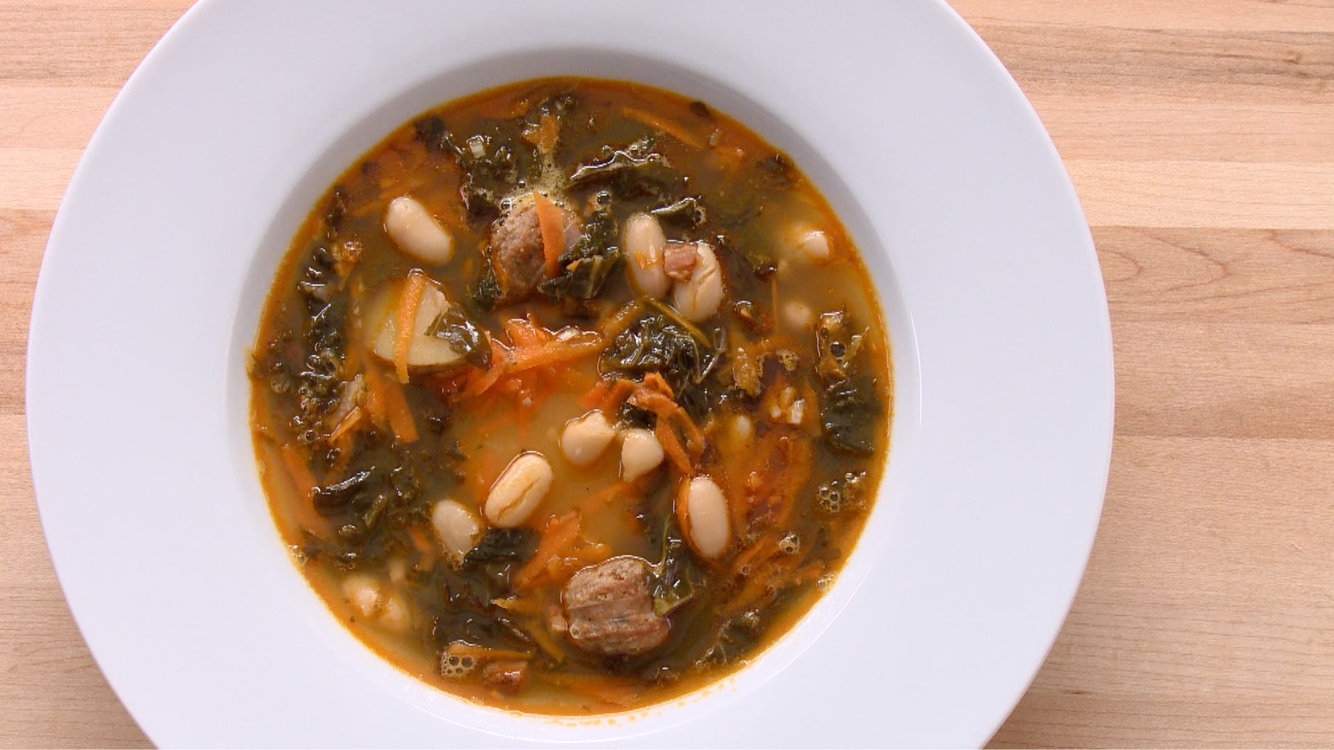 Ajouter les haricots blancs rincés et égouttés, 2 carottes râpées et vos restants de saucisses et chou kale.