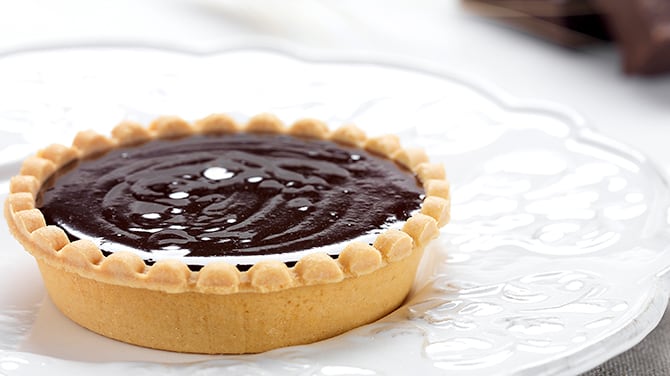 Chauffer le lait au micro-ondes jusqu’à ce qu’il commence à bouillir. Garder un œil dessus! Verser le lait brûlant sur le chocolat haché et laisser fondre 1 minute sans toucher. Remuer le lait et le chocolat et ajouter l’œuf en mélangeant bien au fouet. Verser la ganache dans les abaisses et poursuivre la cuisson environ 10 minutes, le centre sera encore mouvant.
