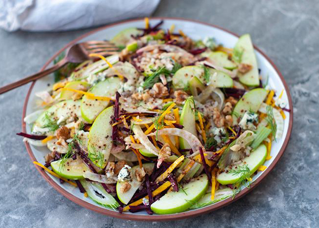 Cette salade d'automne colorée et croquante fait sensation à tout coup. C'est exactement le lunch qui tu cherchais pour demain midi, n'est-ce pas?