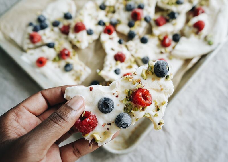 Peut-être avez-vous acheté un gros pot de yogourt en spécial, ou peut-être cherchez-vous un dessert sain et frais. Dans tous les cas, ces barres de yogourt glacé aux baies sont ce qu'il vous faut. Elles sauront satisfaire vos envies de sucré tout en faisant le plein d'antioxydants, de calcium et de vitamine B12.