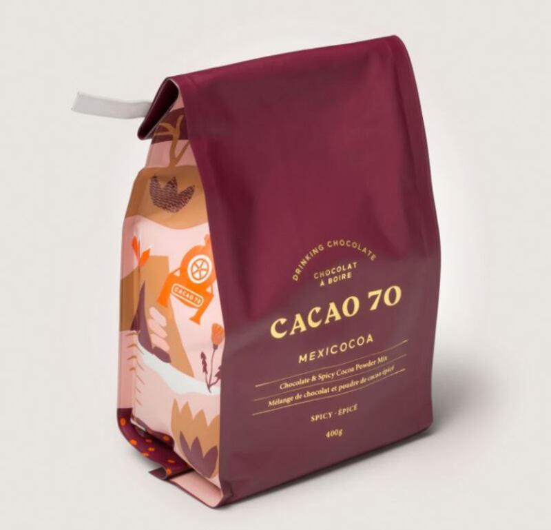 Cacao 70, une autre magnifique entreprise québécoise, propose un chocolat à boire épicé., qui fait changement du traditionnel chocolat chaud.