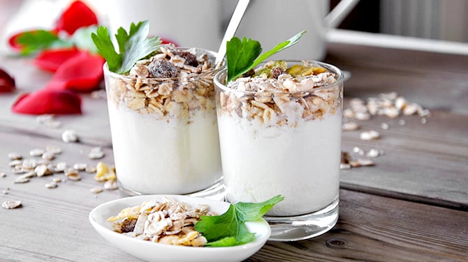 Le yogourt est un aliment très nutritif. Certains l’aiment, d’autres moins, mais il peut tout de même vous suivre toute la journée : au déjeuner, au diner, au souper et même dans vos desserts. Il peut se dissimuler un peu partout et apporter une touche santé à tout ce que vous aimez savourer. Voici dix choses à préparer avec du yogourt pour en ajouter un peu dans votre vie!