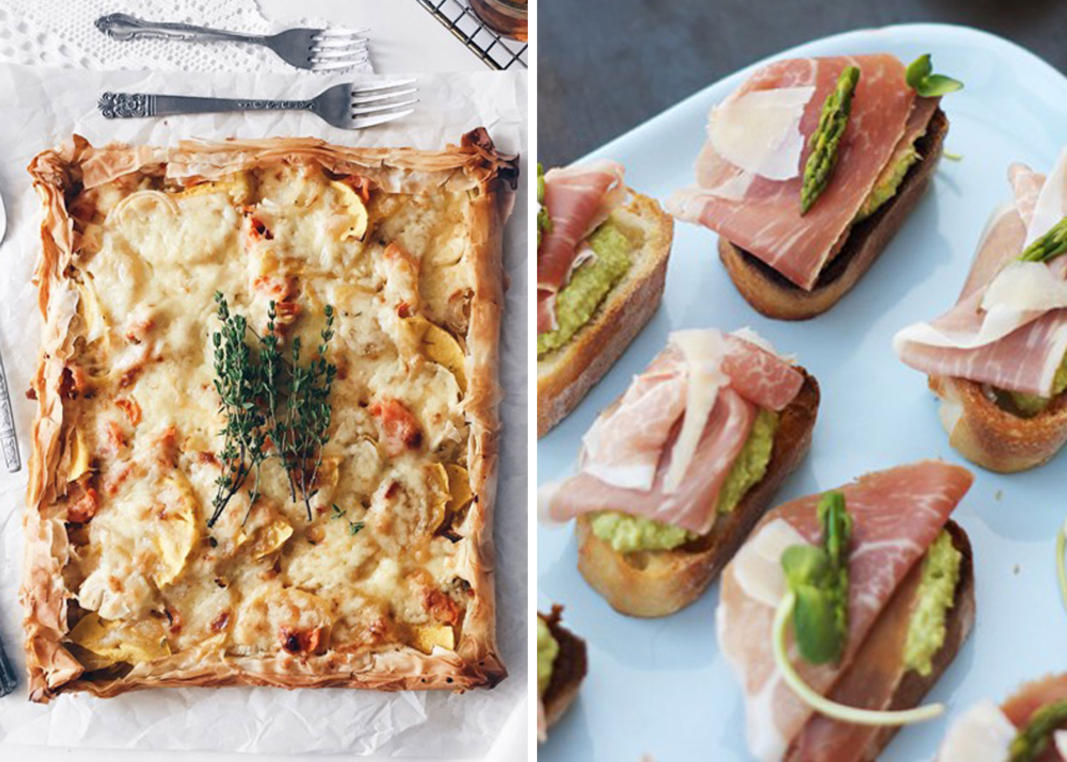 Ce hors-d'œuvre est un must si vous voulez impressionner vos invités sans trop vous casser la tête. Il a l'air tout droit sorti d'un chic banquet et il est super facile à faire. En plus, il rassemble des asperges, de la ricotta, du fromage de chèvre et du prosciutto... Quoi demander de mieux?