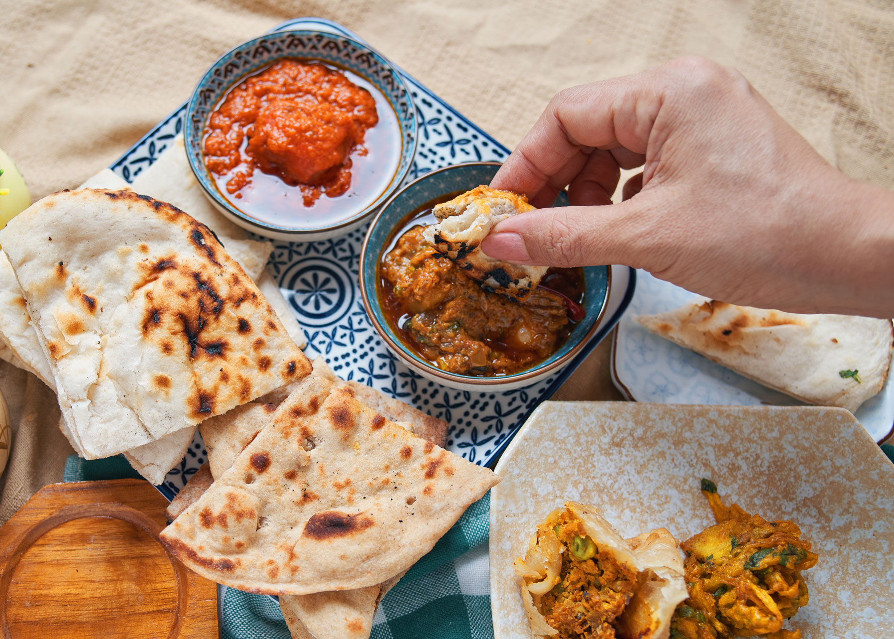 Pour des repas improvisés, les pains plats classiques de la cuisine indienne peut être utilisé de plusieurs façons.