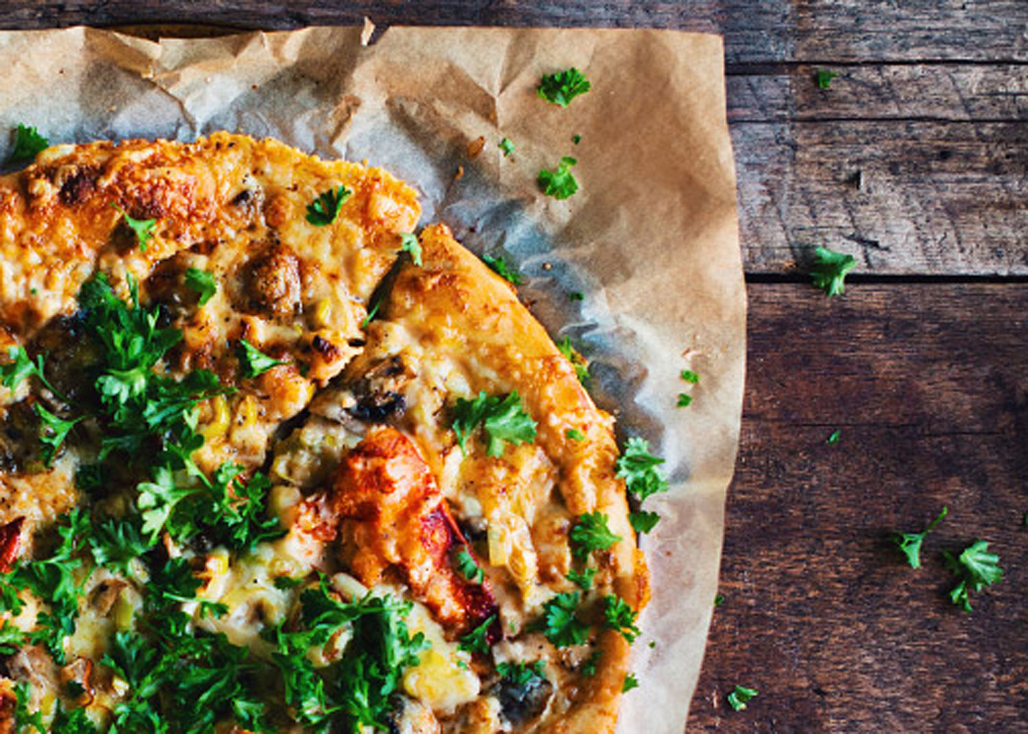 Pour une pizza aux fruits de mer de luxe, pourquoi ne pas y ajouter du homard ? Avec des poireaux, des crevettes et des pétoncles cuits dans une sauce à la crème, de la chair de homard et du parmesan, on obtient un véritable festin de la mer. Retrouvez la recette complète ici.