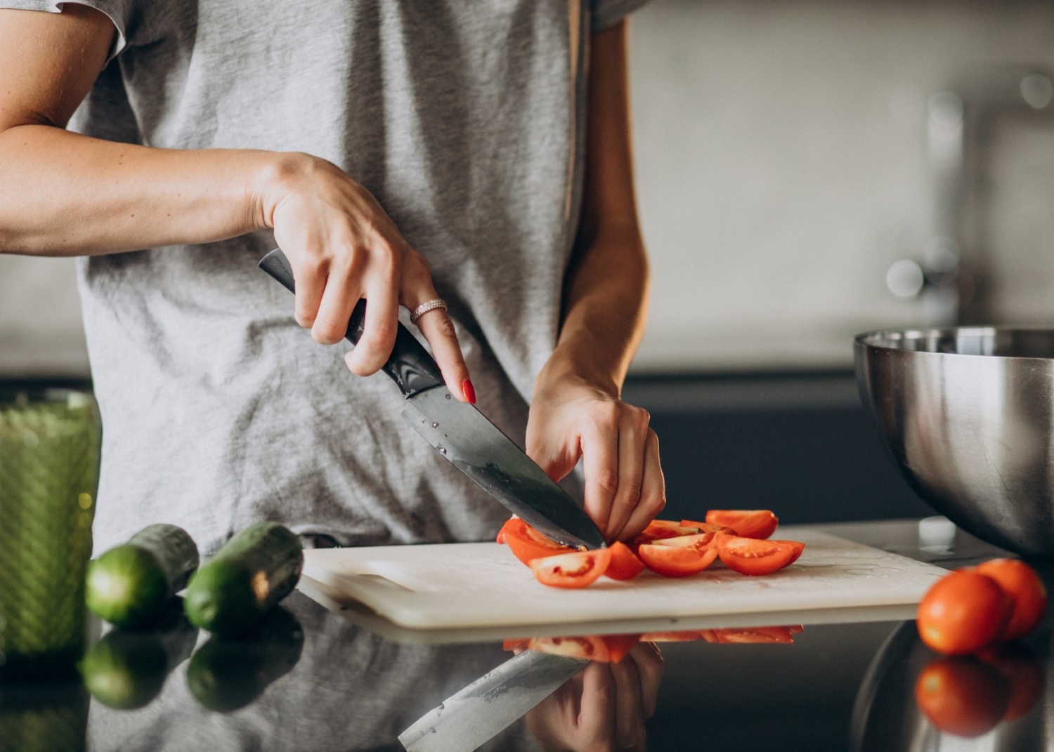 Vous n'aurez besoin que d'huile d'olive, d'oignon, d'ail, de tomates (fraîches ou en conserve), de fines herbes et de sucre pour la réaliser. Consultez la recette complète de sauce ici.