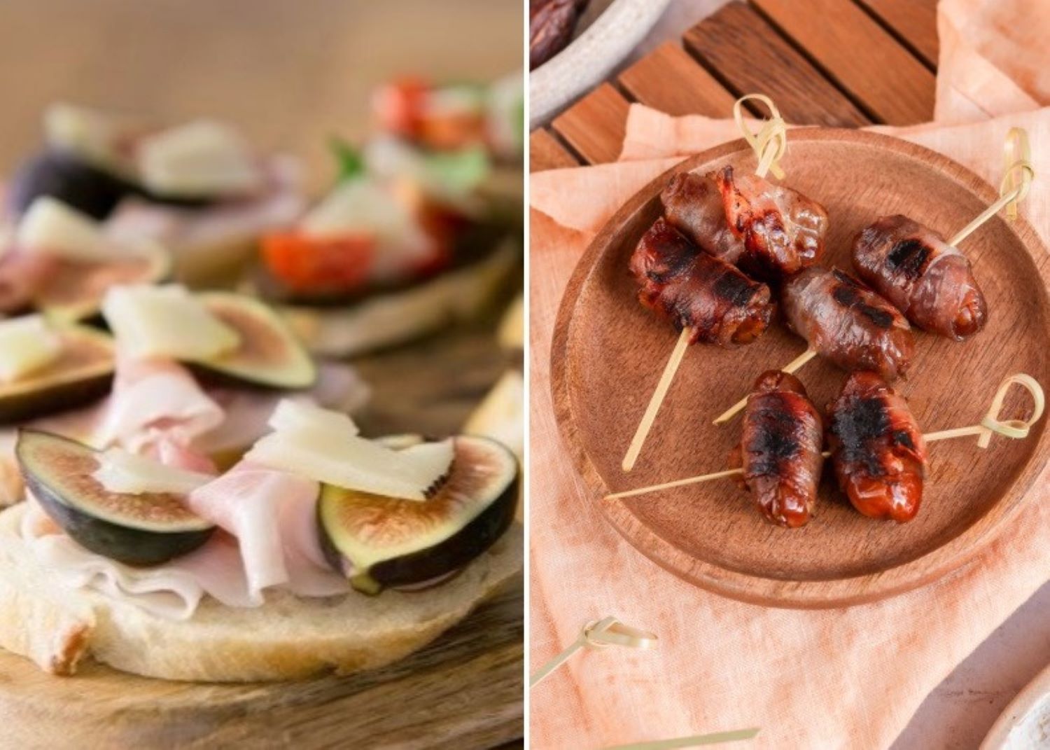 Les bouchées sur des morceaux de pain baguette sont les plus faciles et rapides à réaliser. Il vous suffit d'y placer une tranche de prosciutto, des copeaux de fromage et des tranches de figue. Arrosez le tout d'un filet d'huile d'olive. Elles se dégusteront tout aussi rapidement et feront le bonheur de vos convives.