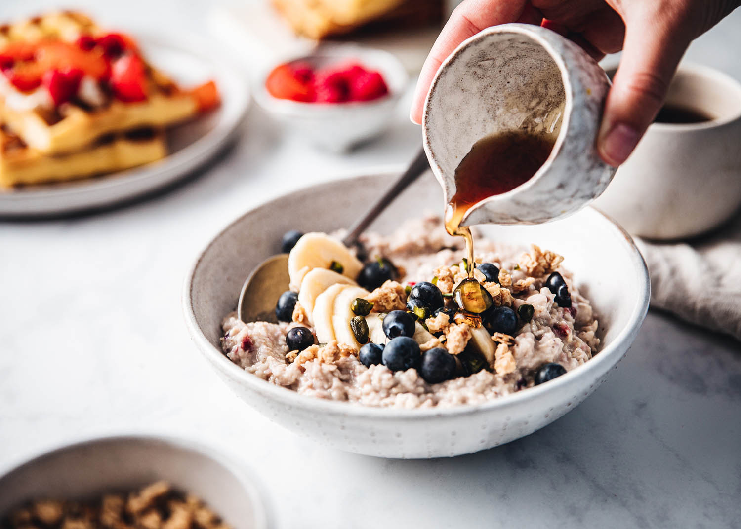 Notre recette de bol crémeux à l'érable, bleuets et croustillant sans gluten