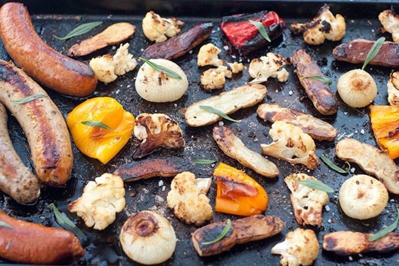 6. Souper de saucisses et légumes sur plaque