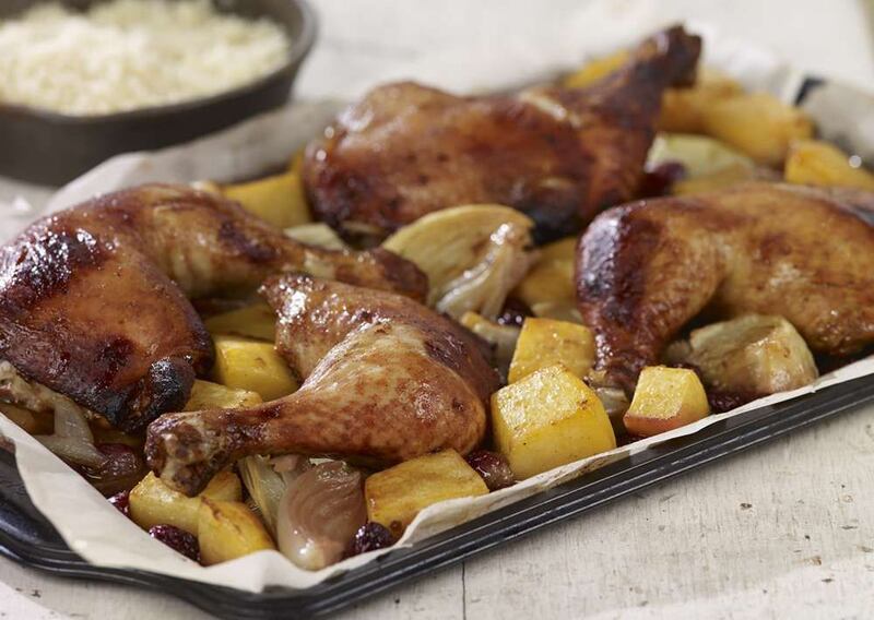 Ce repas sur plaque est non seulement simple et économique, mais il propose également une marinade intéressante à base de miel, sauce soya, ail, moutarde en poudre et cannelle. De leur côté, les raisins rouges ajoutés au plat apportent une touche originale au classique repas de poulet. Consultez la recette complète ici.