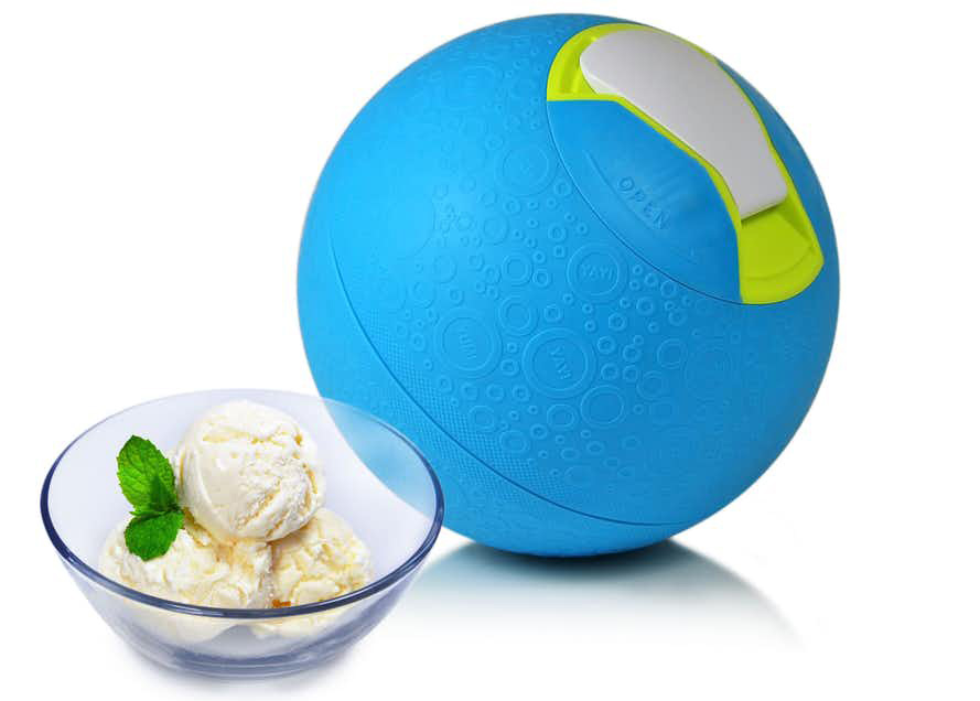 On joint vraiment l’utile à l’agréable! Ce ballon a deux cavités : la première permet d’y verser les ingrédients pour la crème glacée (crème, lait, sucre, saveur) et la deuxième de la glace et du sel, qui vont permettre à la crème glacée de prendre. Ensuite, il s’agit simplement de jouer au ballon pendant au moins 20 minutes, puis le dessert est prêt! Avouez que le design est trop beau, en plus. Il est sans BPA et offert en 3 couleurs.