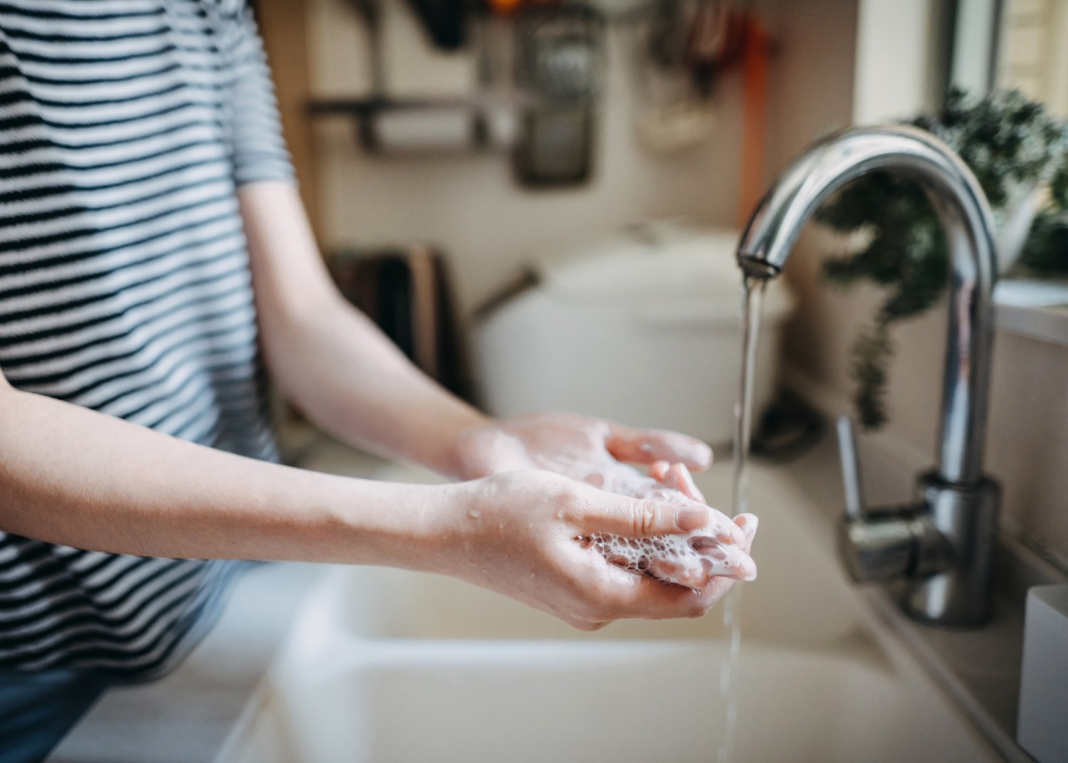 Un bon lavage des mains comme on l’enseigne dans les établissements pour les futur.e.s cuisinier.ère.s devrait durer 20 secondes. La même règle devrait s’appliquer dans notre cuisine.