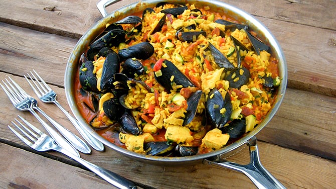 Ce plat est bien connu dans notre petit bout de pays, même à plus de 5600 km de son pays d'origine. Ce plat, issu de la communauté valentienne de l'Espagne, est nommé ainsi d'après la poêle dans laquelle elle est traditionnellement cuisinée.