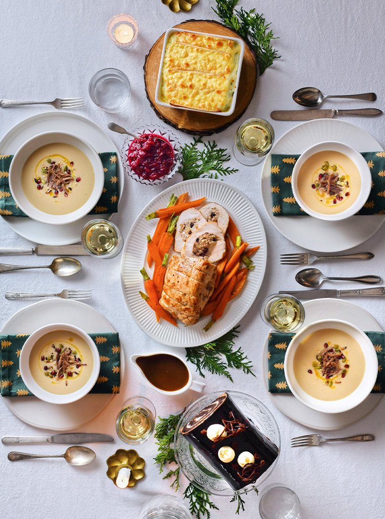 Pour vous offrir un petit luxe - et disons-le, un moment de répit, voici donc 6 restaurants et traiteurs qui offrent des coffrets thématiques des Fêtes un peu partout au Québec. Il vous suffira de réchauffer et de monter la table de Noël... et de profiter d'une soirée sans tracas... à condition bien sûr que mononcle Hector ne tombe pas dans le bol à punch!