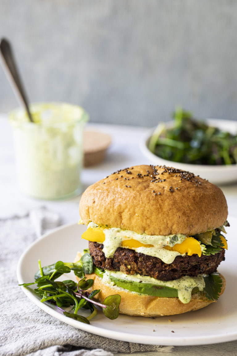 On revisite les burgers classiques avec cette recette végé où l'avocat, et les mangues volent la vedette. Consultez la recette complète ici.