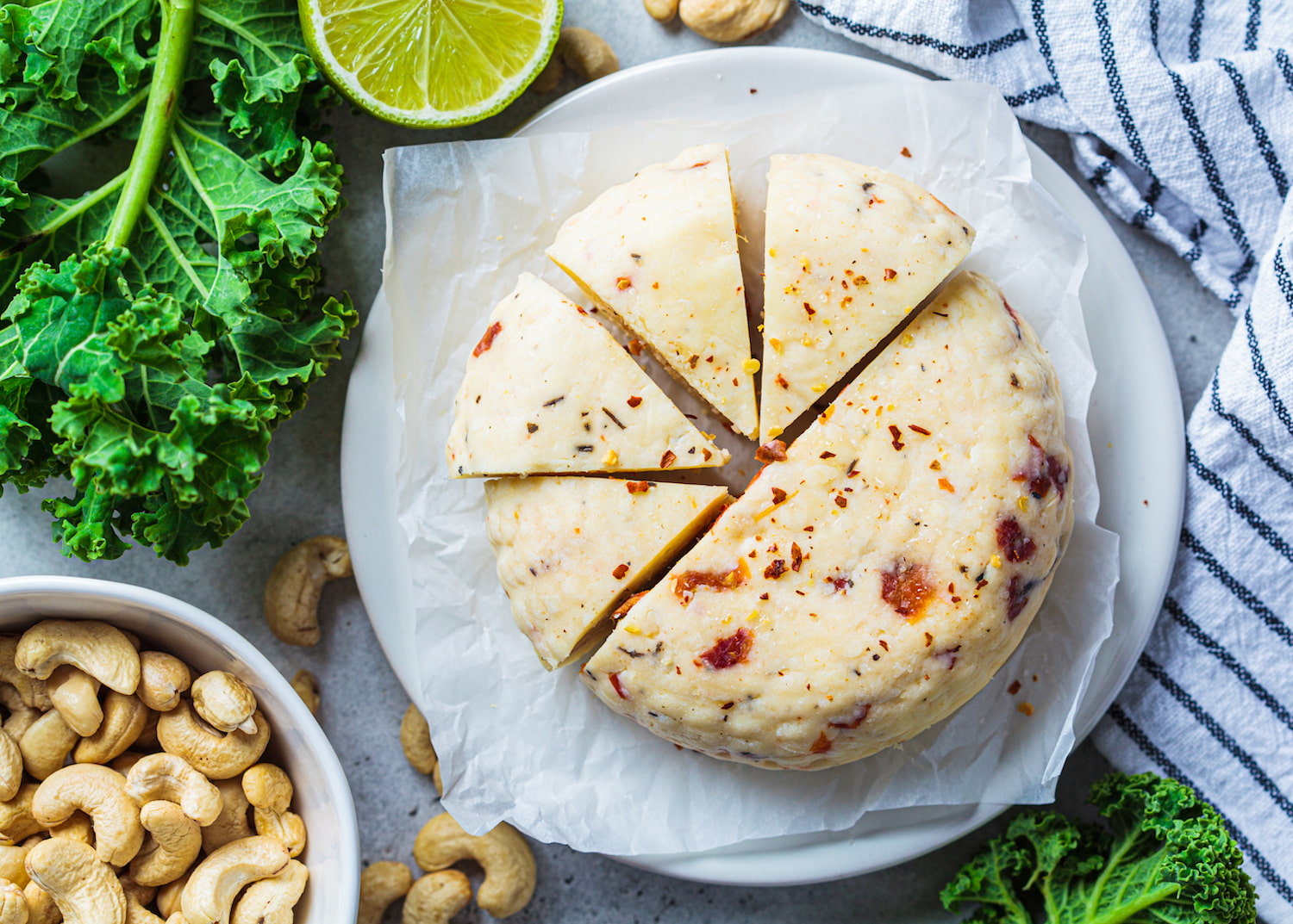 Je suis vraiment désolée, mais je n’ai trouvé aucune alternative intéressante jusqu’à date. Ce qui se rapproche le plus, c’est le fromage de la compagnie canadienne Nuts for Cheese, qui propose différentes saveurs et est vendu en pointe… Mais ce n’est pas vraiment du fromage ferme, seulement du fromage crémeux un peu plus pressé que les autres.