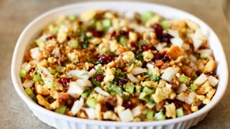 La farce au pain est un grand classique des fêtes. Il en existe autant de recettes qu'il y a de familles en Amérique du Nord, ou presque! Voici une recette de farce classique, que nous vous invitons à personnaliser selon vos goûts et votre inspiration. Suivez les étapes, et laissez travailler votre imagination!