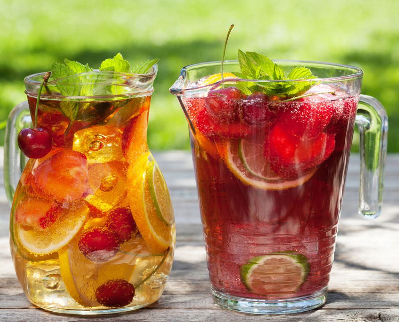 Facile à faire, les cocktails en pichet ou les sangrias sont toujours bien appréciés des convives lors des fêtes. On aime particulièrement le fait qu'ils peuvent être préparés à l'avance et qu'ils ne nécessitent pas que vous jouiez au barman ou à la barmaid toute la soirée. Déposez les pichets sur la table et vos invités pourront ainsi remplir leur verre à leur guise.