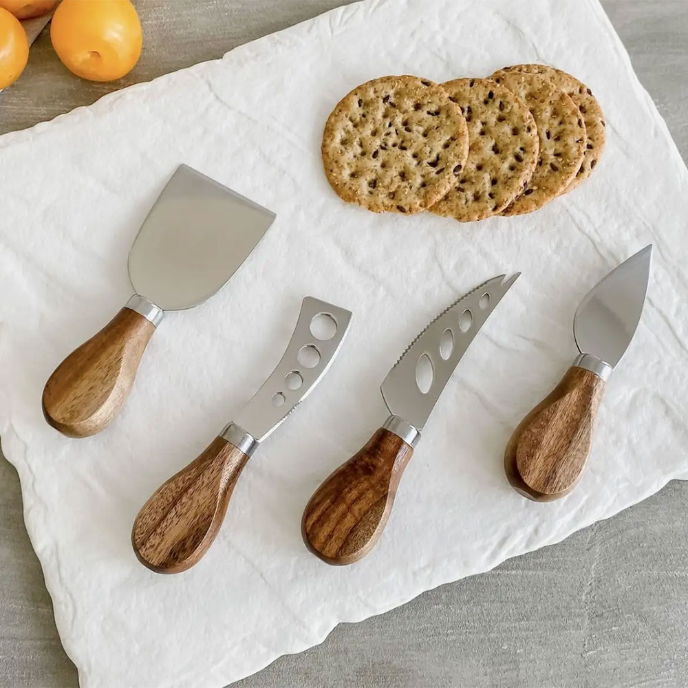 Pas de doute: vous épaterez la galerie avec ces couteaux à fromage ornés d’un magnifique manche en acacia. Spécialement conçus pour couper les fromages à pâte molle ou à pâte dure, vous serez lors équipé comme un pro pour servir camemberts, cheddars et goudas.
