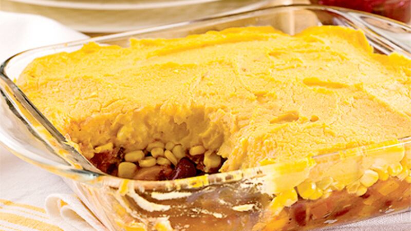 Un pâté chinois à la mode mexicaine! L'originalité de cette recette tient dans la purée composée d'un mélange de courge poivrée, de patates douces et de pommes de terre. Les haricots rouges et l'assaisonnement à chili confirment les accents «olé, olé» de ce plat. Consultez la recette de Pâté étagé tex-mex.