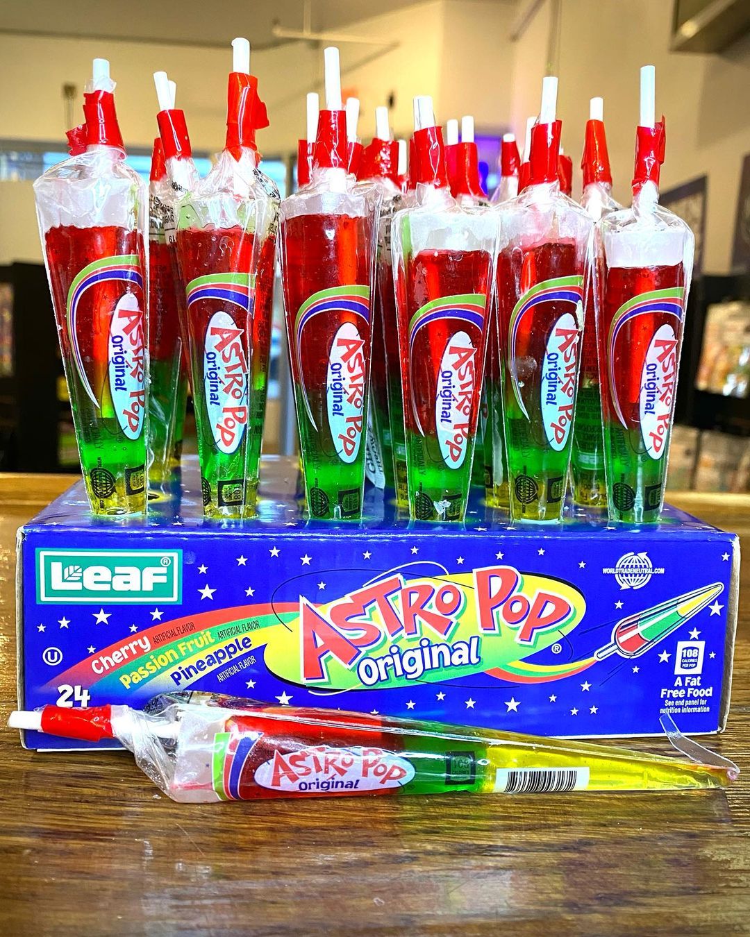 Ce suçon qu'on qualifiait comme « le plus long au monde » a été inventé dans les années 1960 par deux scientifiques qui travaillaient auparavant pour la NASA. À cette époque, c'était la folie de l'espace, et donc ce bonbon était supposé avoir la forme d'une fusée! Il y avait même aussi une couche de cire au bout du suçon; une pratique assez courante avec les bonbons à l'époque, mais aujourd'hui presque complètement disparue...
